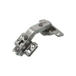 Bisagra rinconera para muebles de cocina, diseñada para puertas en esquinas. Permite una apertura adecuada en ángulo, optimizando el acceso y el aprovechamiento del espacio.