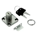 Cerradura para cajón base cuadrada, ideal para brindar seguridad en muebles. De fácil instalación, ofrece un cierre firme y confiable, apta para cajones de madera o MDF.