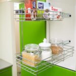 Los despenseros de 2 niveles (o canastos dobles) de Eurotecno son sistemas extraíbles diseñados para aprovechar módulos estrechos o bajos de la cocina, funcionando frecuentemente como botelleros o porta artículos de limpieza
