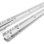 Producto elaborado en acero con terminación en pintura epoxi, guiadas por ruedas de nylon de extracción parcial. Montaje sobrepuesto, posibilidad de ajuste en altura mediante agujeros oblongos en el perfil del armario.